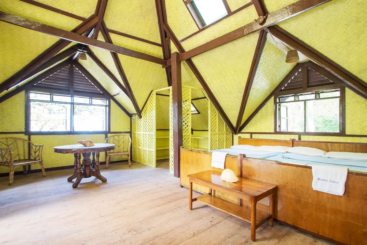 The ancestral house on Brother Island offers a rustic yet comfortable retreat for up to 16 guests, housing them in seven bedrooms with nine beds. While it lacks modern distractions like air-conditioning, WiFi, and TV, the space is designed to foster simplicity and reconnection — think ocean breezes, natural ventilation, and nights under the stars.